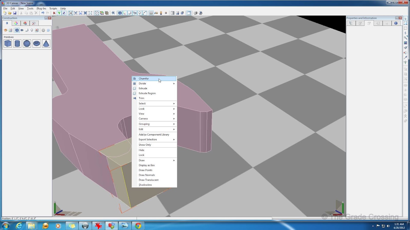 | 266. Now we will drag a cube onto the scene and use a LOT of pulling, pushing, and Chamfering to make the front part of the coupler.